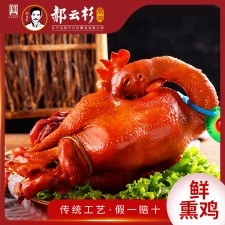 沟帮子熏鸡制作过程精细,有十六道工序,包括选活鸡、检疫、宰杀、整形、煮沸、熏烤等。制作方法如下: 一、选用一年生健康公鸡,屠宰后盘鸡整型,大致和烧鸡相同; 二、按400只鸡计算,胡椒粉50克,五香粉50克,香辣粉50克,豆蔻50克,砂仁 50克,山奈50克,肉桂150克,白芷150克,桂皮150克,丁香150克,陈皮150克,草果100克,鲜姜250克,味精200克,香油1公斤,另备白糖2公斤,老汤适量。如无老汤,各种调料用量加倍; 三、经整型后的鸡,先置于加好调料的老汤中略加浸泡,然后放在锅中,顺序摆好。用慢火煮沸2个小时,半熟时加盐(用盐量应根据季节和当地消费者的口味定),煮至肉烂而连丝时搭勾出锅; 四、出锅后趁热熏制。将煮好的鸡体先刷一层香油,再放入带有网帘的锅内,待锅烧至微红时,投入白糖,将锅盖严2分钟后,将鸡翻动再盖严,再等2~3分钟后,即可出锅; 五、色泽枣红明亮,味道芳香,肉质细嫩,烂而连丝。 在煮沸配料上更是非常讲究,除采用老原汤加添二十多种调料外,还坚持使用传统的白糖熏烤,同时必须做到三准:一是投盐要准,咸淡适宜;二是火候要准,人不离锅;三是投料要准,保持鲜香。最后做好出炉的色泽枣红明亮,味道芳香,肉质细嫩,烂而连丝,咸淡适宜,营养丰富。